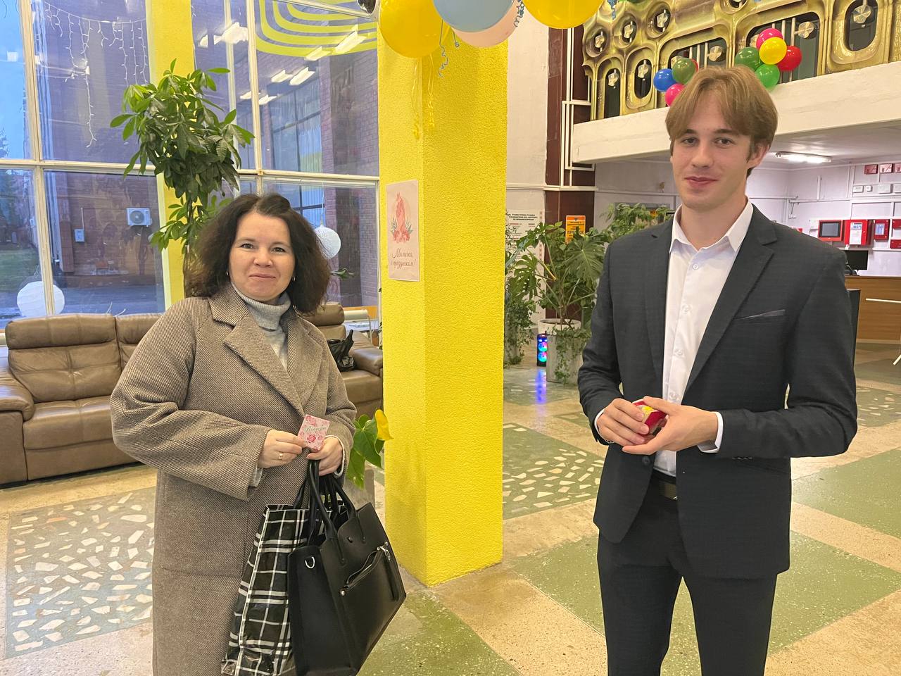 С самого утра наши женщины, мамы принимали от мужчин поздравления, вручая под праздничную музыку им открытки.