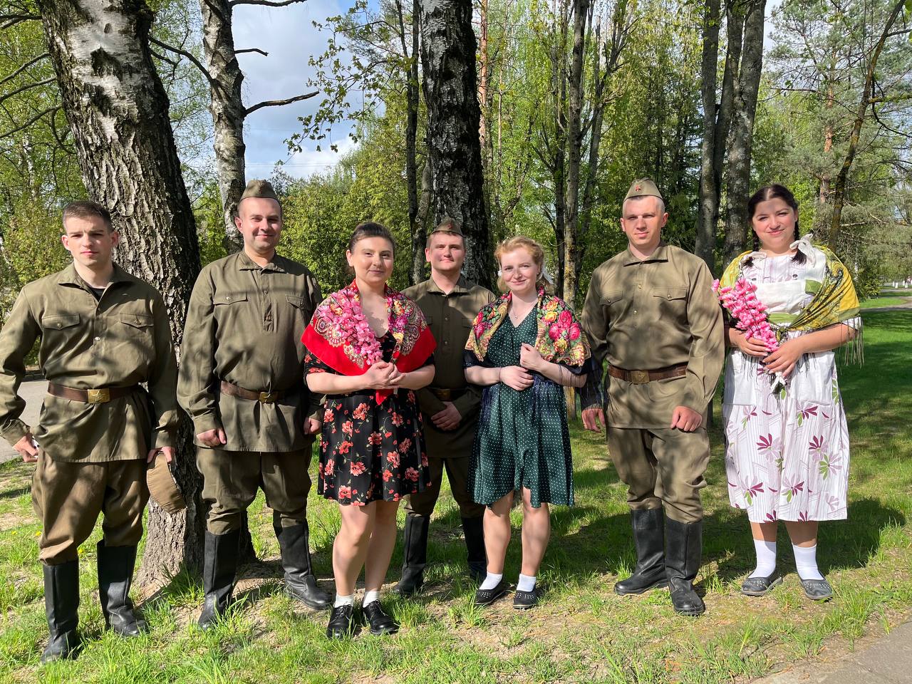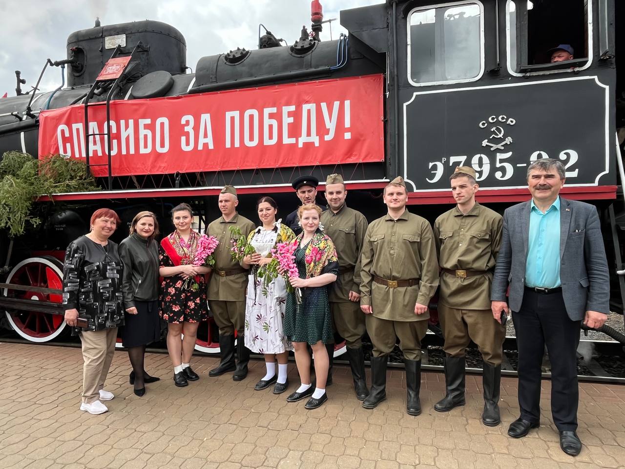 Коллектив ОАО "Моготекс" перевоплотился в жителей советского времени и празднично встретили «Поезд Победителей», на котором приехали советские солдаты, герои-победители.