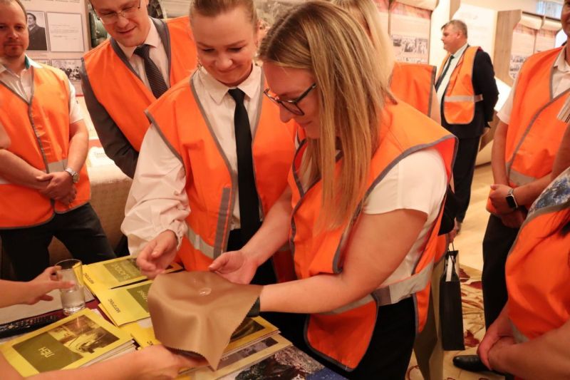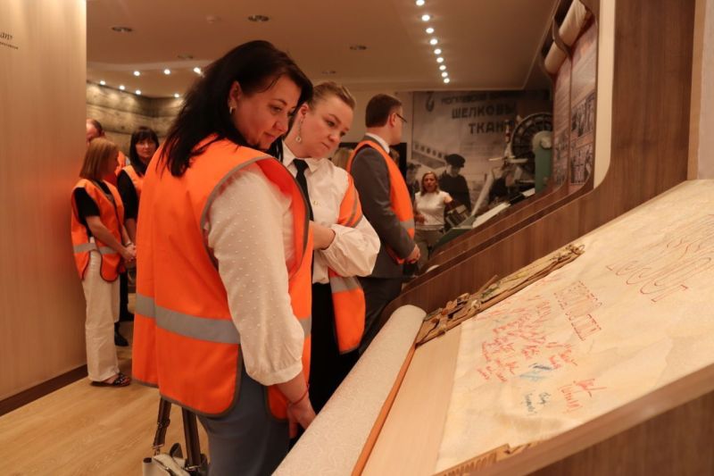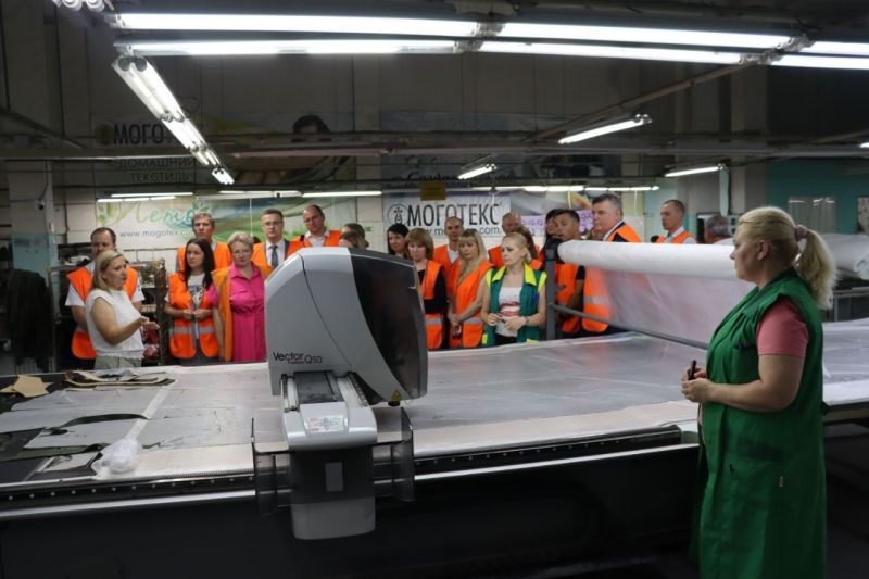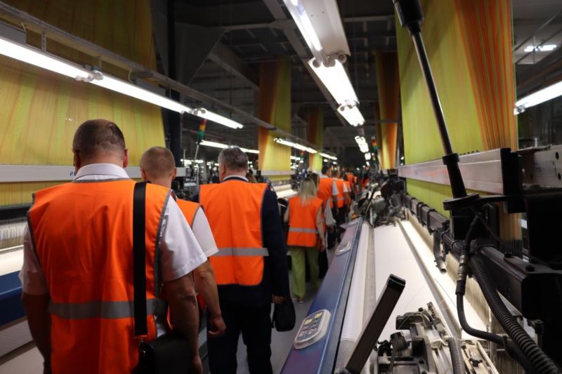 Для гостей была организована экскурсия по производству, во время которой они могли оценить практически всю технологическую цепочку — от выпуска тканей до пошива готовой одежды.