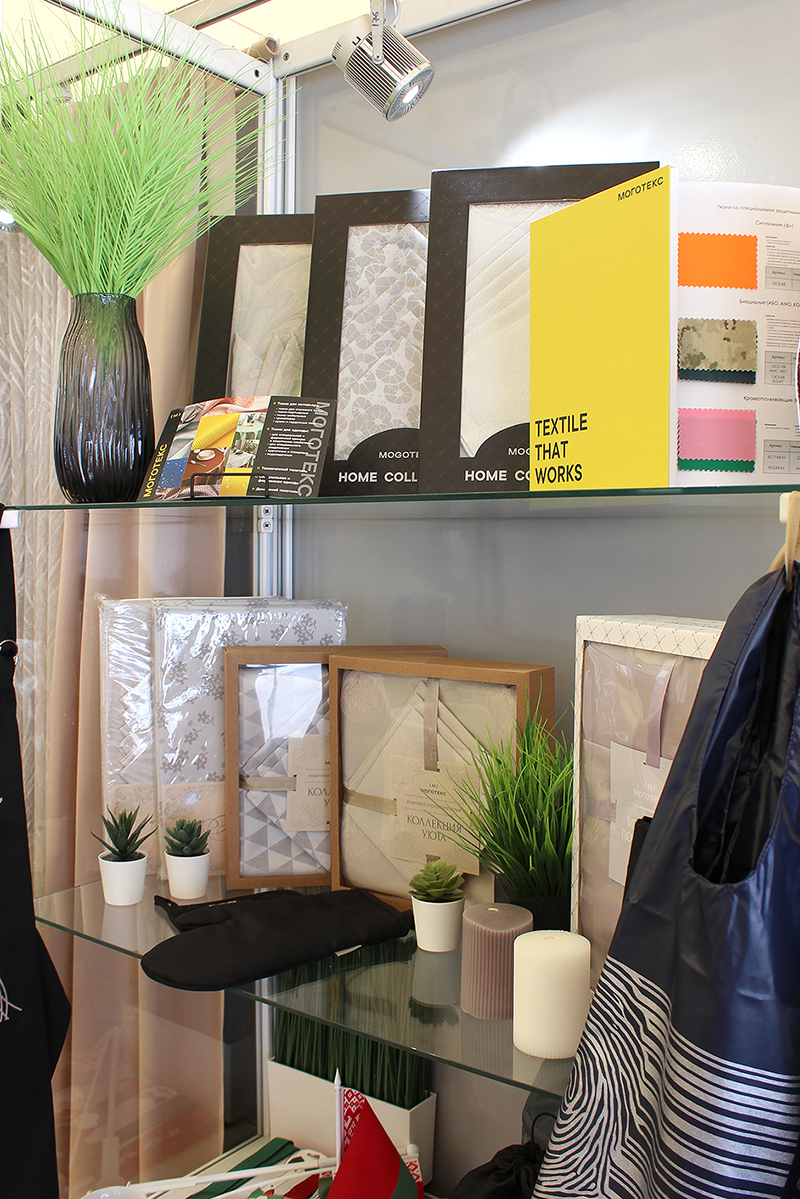 С 27 по 28 июня компания "Моготекс" принимает участие в XI выставке-форуме регионов Беларуси и России на тему "Роль межрегионального сотрудничества в построении инновационной экономики союзного государства". На совместном стенде концерна "Беллегпром" ОАО "Моготекс" представило инновационную продукцию в виде полотен тканей, предназначенных для различных нужд, в том числе для спецодежды рабочих. Образцы таких костюмов представлены на манекенах, демонстрирующих применение флуоресцентных тканей, тканей со стрейч-эффектом и другие. В инновационный блок вошли также материалы, предназначенные для домашнего текстиля, такие, как ткани для постельного белья из лиоцелла, ткани для портьер из трилобала, а также полотна блэкаута. Готовые изделия в виде комплектов скатертей, постельного белья и иных товаров домашнего назначения представлены в блоке текстильной продукции. Экспозицию компании дополнили изделия других предприятий-участников стенда.