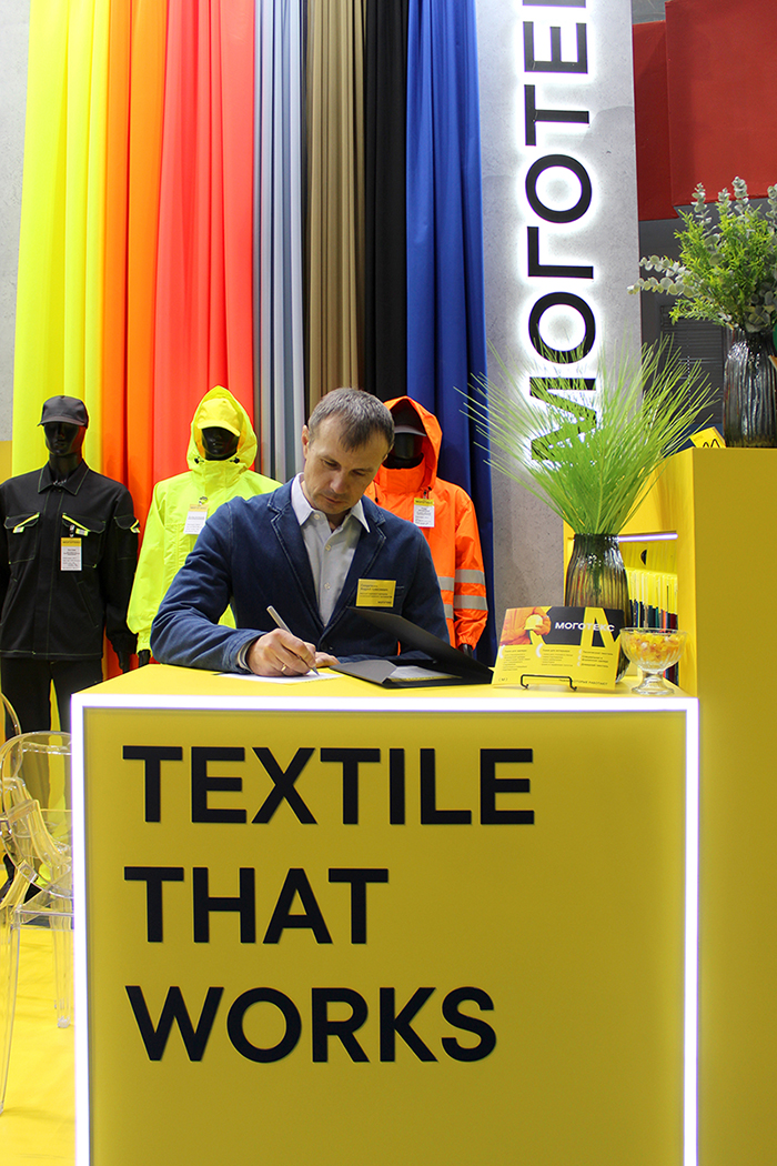 ОАО "Моготекс" стал одним из экспонентов выставки (стенд B2). На стенде компания представила широкий ассортимент продукции, в т.ч. ткани для специальной и форменной одежды, ткани со специальными защитными свойствами, для специального снаряжения, курточные и подкладочные. Экспозицию дополнили манекены, на которых демонстрировались специальные костюмы для рабочих, включая комплекты из тканей флуоресцентной расцветки. Материалы предприятия используются работниками нефтегазовых компаний, подходят для сотрудников, работающих в условиях недостаточной видимости, — автотрассы, ЖД и не только.