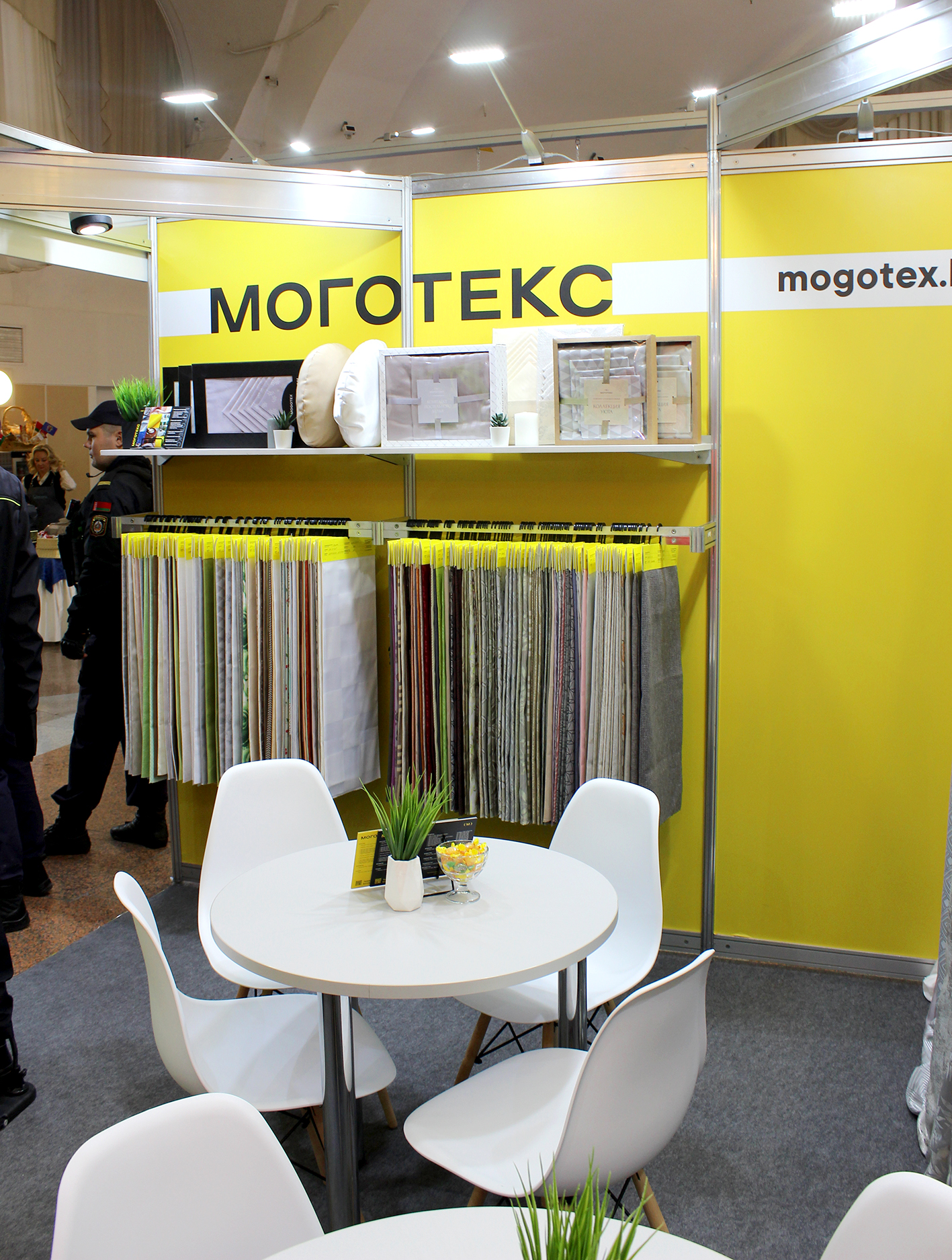 Со 2-го по 4-е октября в выставочном центре "БелЭкспо" проходит 48-я международная выставка-ярмарка по оптовой продаже товаров лёгкой промышленности "BelTexIndustry". ОАО "Моготекс", являясь постоянным участником мероприятия, продемонстрировало на своем стенде ткани как для специального назначения, так и для оформления интерьера. Среди инноваций предприятия - ткань для постельного белья из волокна "Лиоцелл", полиэфирная ткань для портьер с уникальной структурой блестящей нити "Трилобал", а также полотна ткани "Blackout" для блокировки солнечного света. На полках представлены готовые изделия компании - скатерти и постельное белье. Стенд дополняют манекены, на которых демонстрируются комплекты сигнальной спецодежды из тканей флуоресцентных расцветок для работающих в условиях слабой видимости.