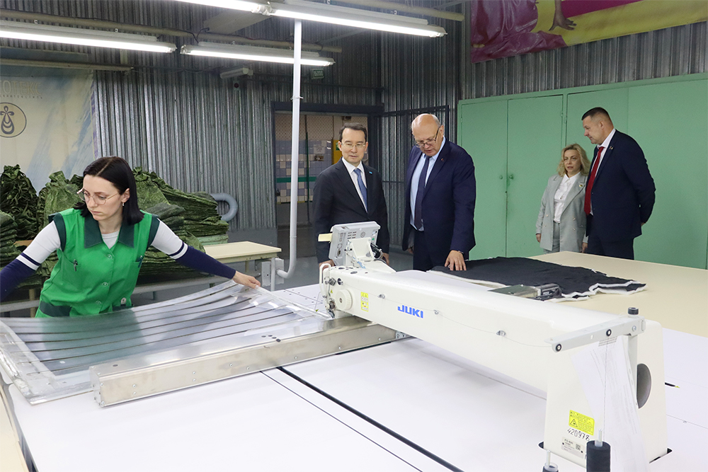 28 мая Чрезвычайный и Полномочный Посол Казахстана в Беларуси Тимур Жаксылыков ознакомился с работой и продукцией флагмана текстильной промышленности - предприятия "Моготекс".