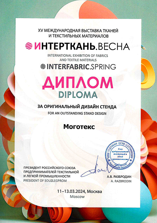 На стенде компания представила широкий ассортимент тканей специального назначения, а также материалов для оформления интерьера. Новые разработки текстильных полотен вошли в тренды 2024 года. Из них можно выделить: