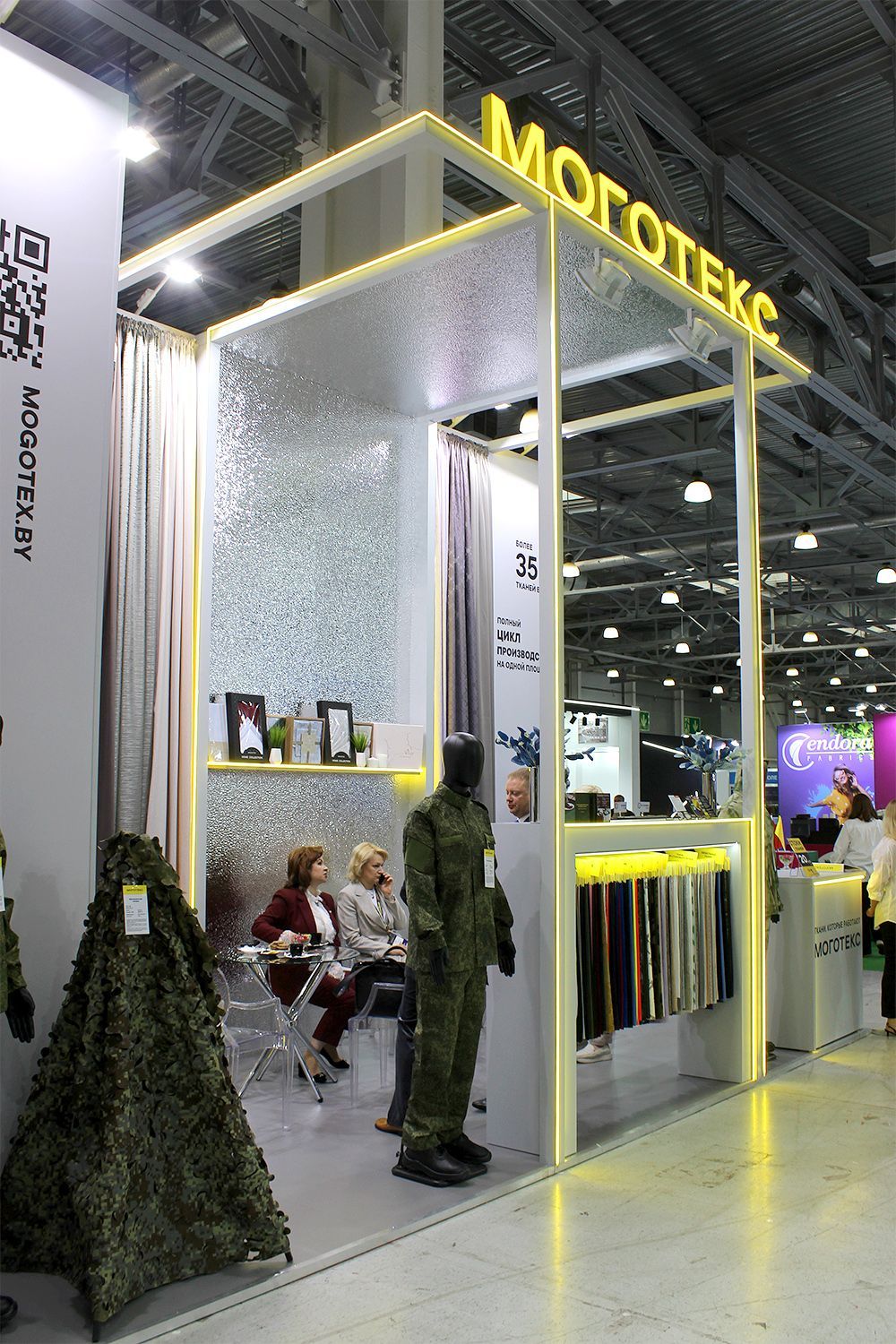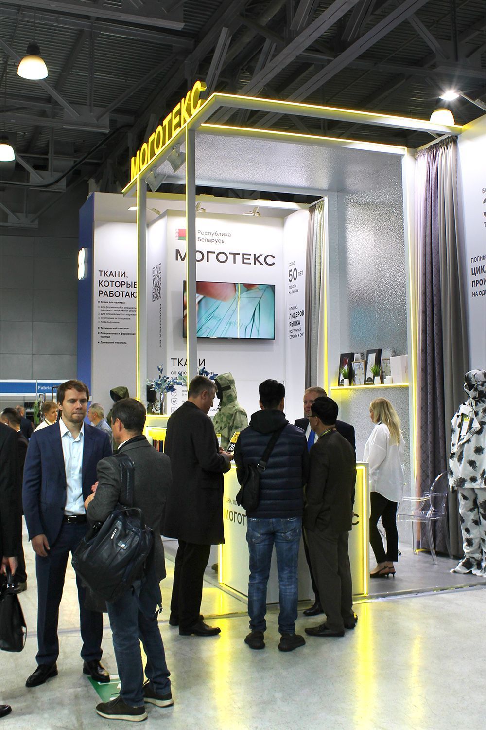 На стенде компании можно детально ознакомиться с широким ассортиментом предприятия, в т. ч. с представленными образцами тканей для одежды и интерьера и готовыми швейными изделиями, получить профессиональную консультацию от специалистов и обсудить выгодные условия сотрудничества.